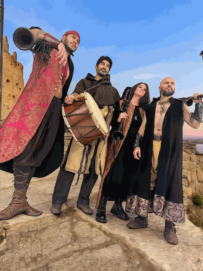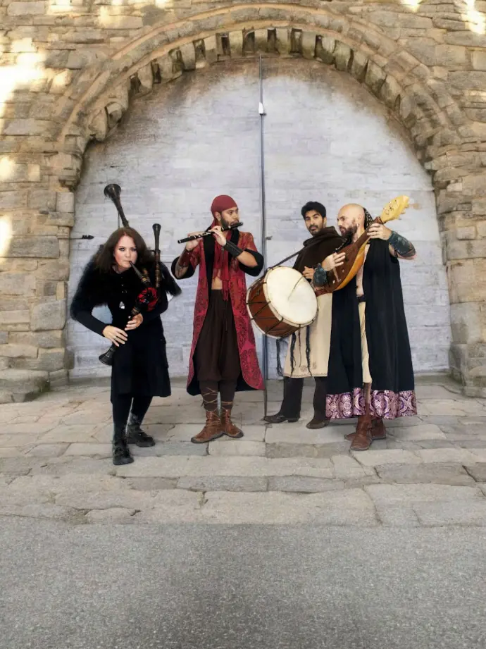 The repertoir has a big variety as medieval classical songs, some renaissance songs adapted in a medieval way for vocals, strings, flutes and bagpipes,this band have also their own compositions and some songs from balkans, middle east, and Keltic music.